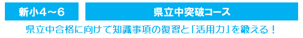 県立中入試の特徴である「適性検査」では,思考力・判断力・表現力が試されます。中学受験で求められる基礎的な知識に加え,その知識を活用して考え,判断し,さらに表現する力も必要となります。春期講習では,前学年の復習に加え,知識の活用力を伸ばす『活用』の授業で,受験に向けた基礎を固めます。(新小4は算数と国語のみ)