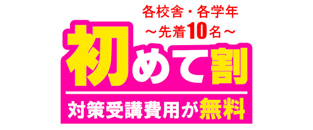 『初めて割』キャンペーンを実施しています。次に該当する方は,受講費用全額無料で定期テスト対策講座をご受講いただけます。