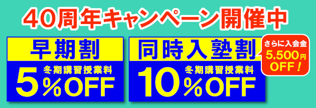 ※「早期割特典」は12/6(土)までのお手続き完了が必要です。また,「同時入塾特典」は12/23(火)までのお手続き完了が必要です。