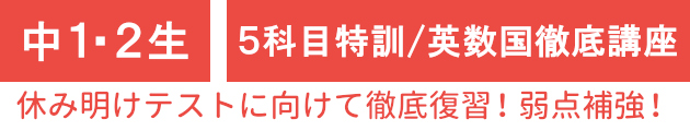 中1・2生 授業料:5科目/全9日間 21,450円(税込)
