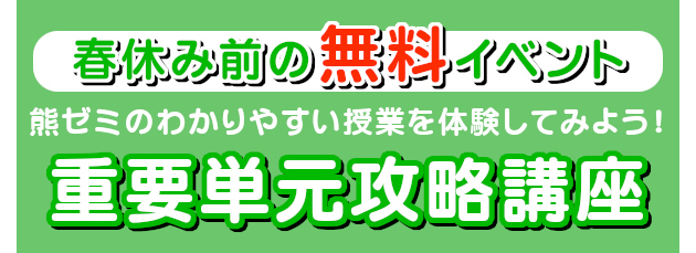 熊本ゼミナールでは「塾に通いたいけど,初めてなので不安・・・」「新学年に向けて苦手単元をひとつ減らしておきたい」という声にお応えするイベントを開催します。ぜひお気軽にご参加ください。